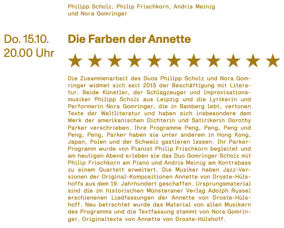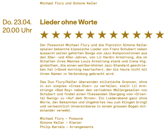 und am Samstag, 21. Februar um 19:30 Uhr im Ackermannshof Basel
