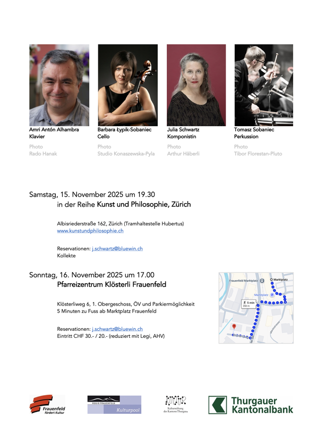 Es war die Idee von Tomasz, einen Pianisten für ein Konzertprojekt an Bord zu holen. So wird es möglich, ein weiteres Werk von Julia sowie zwei weitere Ensembles ins Programm aufzunehmen. Julia